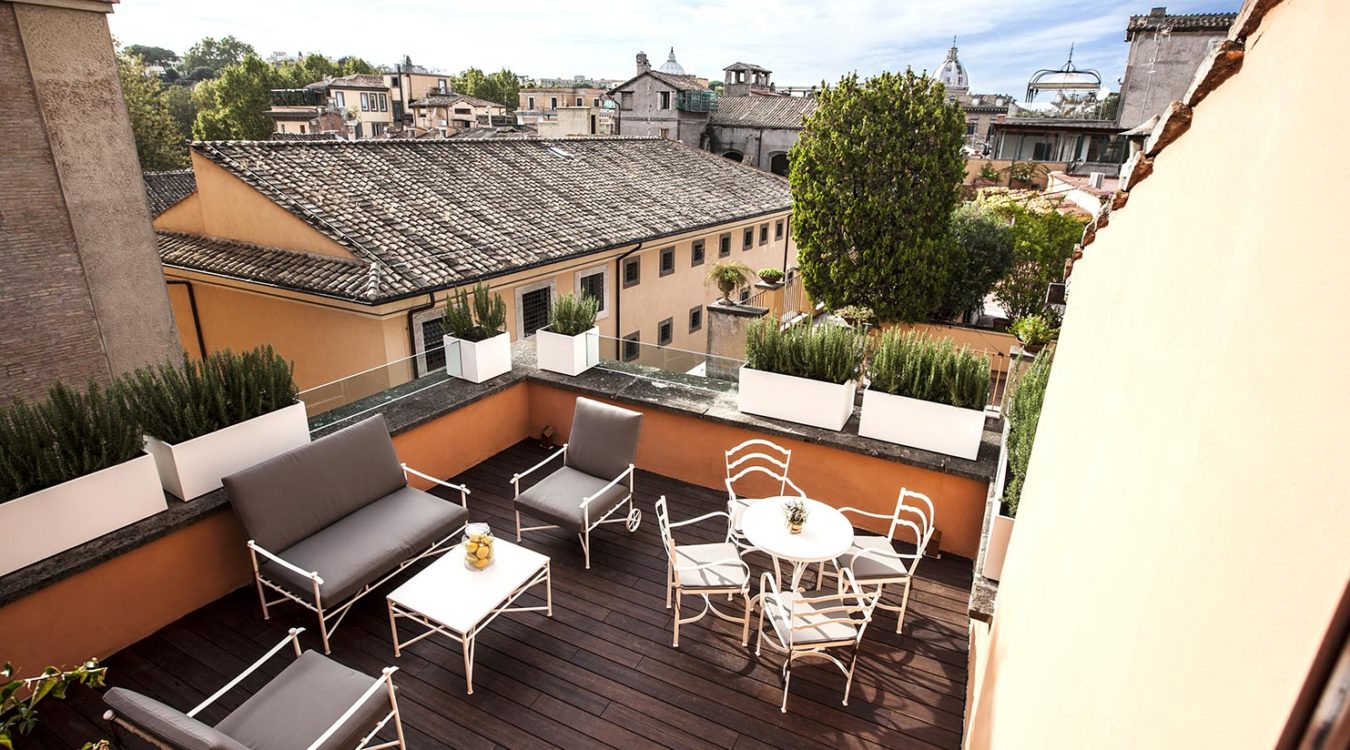 D.O.M Hotel is an intimate five star property with 18 guest rooms and suites, each with direct views over the historic Via Giulia. Originally a 17th century palace turned Claretian monastery, D.O.M is an abbreviation of “Deo Optimo Maximo,” a Latin inscription found on the church adjacent to the property. The boutique luxury hotel includes unique offerings and comforts such as the distinctive D.O.M suite which boasts a private terrace spanning over 25 square meters with exclusive views of the rooftops and bell towers of Rome’s celebrated Regola quarter.
