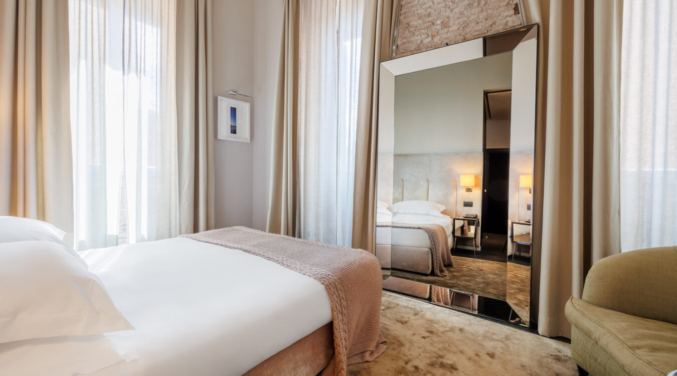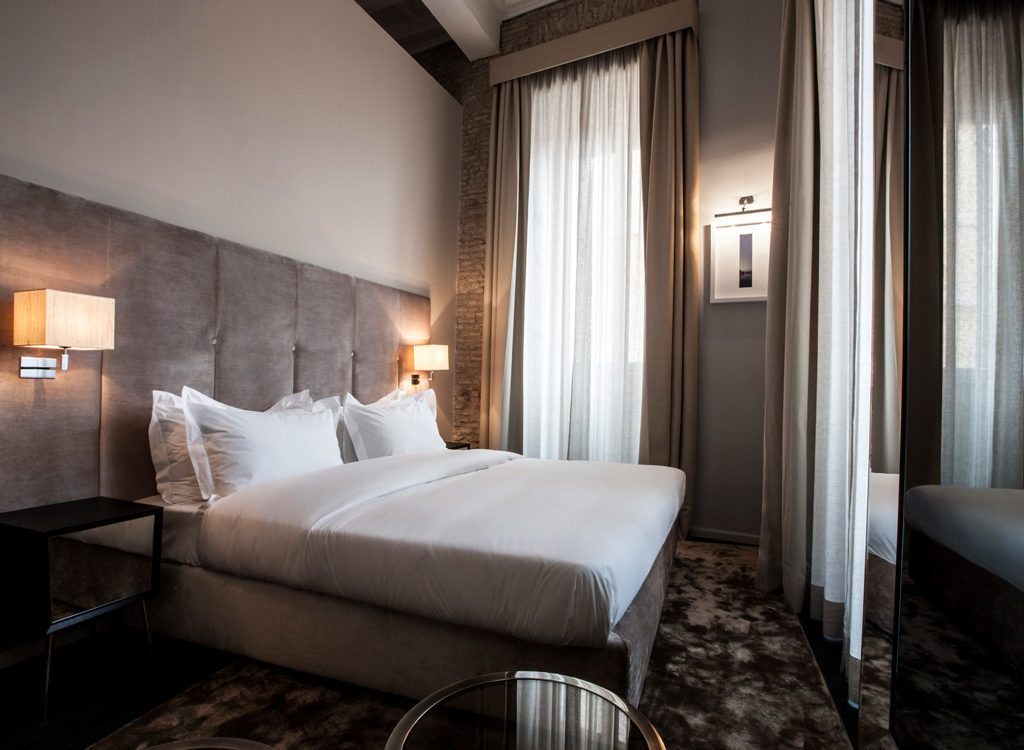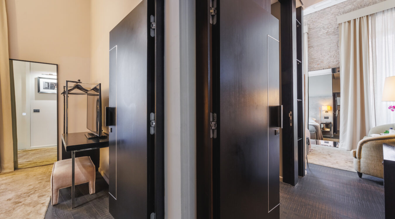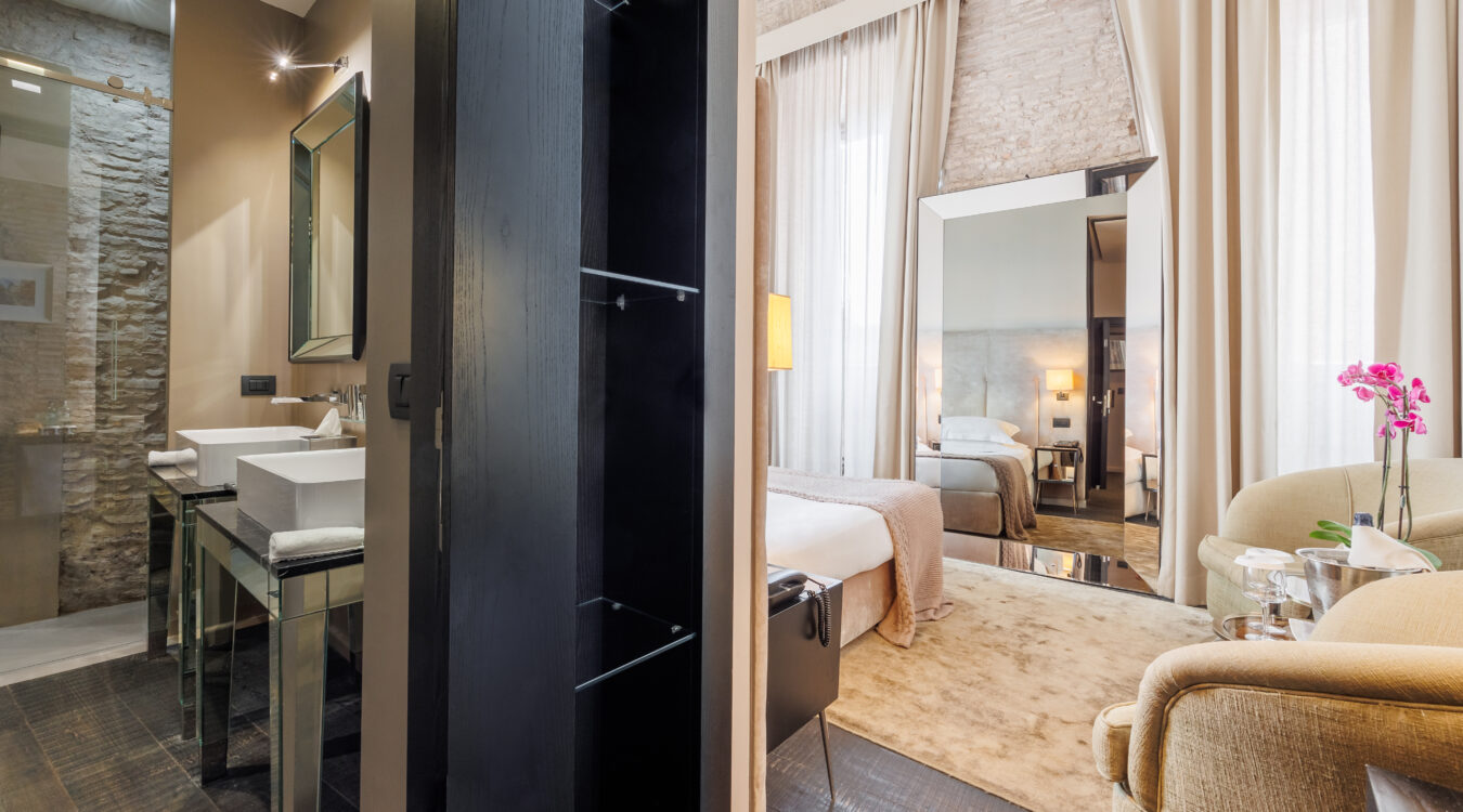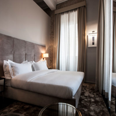 Triple Junior Suites (40 m2) boast sumptuous king size beds, comfortable separate living areas, two private full bathrooms, and traditional coffered chestnut ceilings complete with plaster ceiling roses.