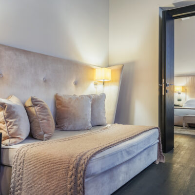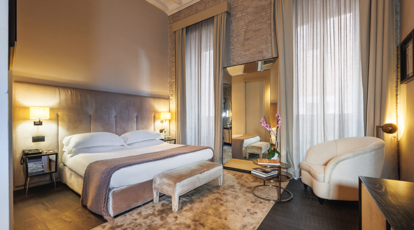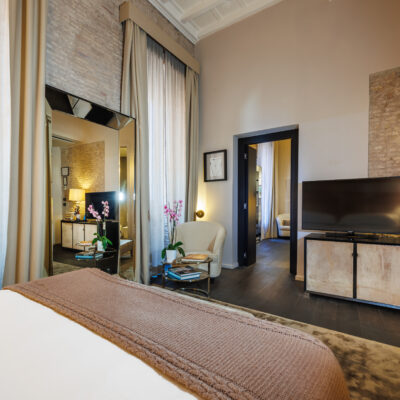 Suites (45 sq mt) are located in the heart of the palace and divided into day and night areas. Each suite is equipped with two spacious full baths with double sinks.