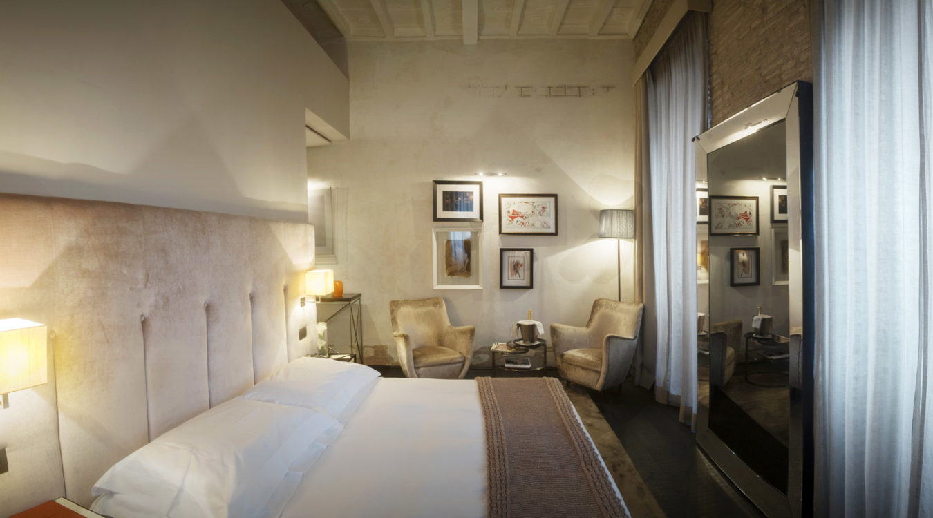Nel centro storico di Roma vi aspettano le suite di lusso dell’Hotel DOM. Situato in un edificio secentesco che ospitava un convento, è stato completamente rivisitato dall’architetto Antonio Girardi, che ha saputo valorizzare con grande maestria la bellezza di ambienti carichi di storia, abbinando alla modernità delle fotografie di Man Ray ed Andy Warhol, soffitti a cassettoni, mattoncini a vista e pavimenti in legno.
