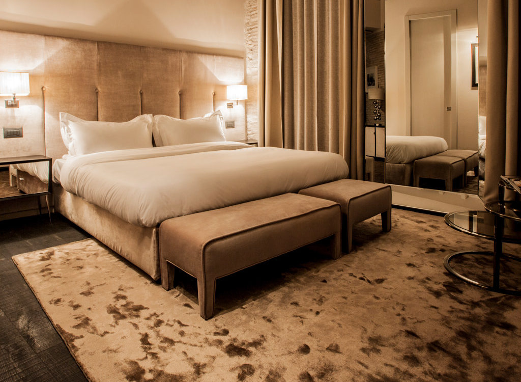 Le camere Deluxe (25mq) hanno testate del letto in velluto rasato, tappeti in cachemire e seta, grandi specchi televisori.